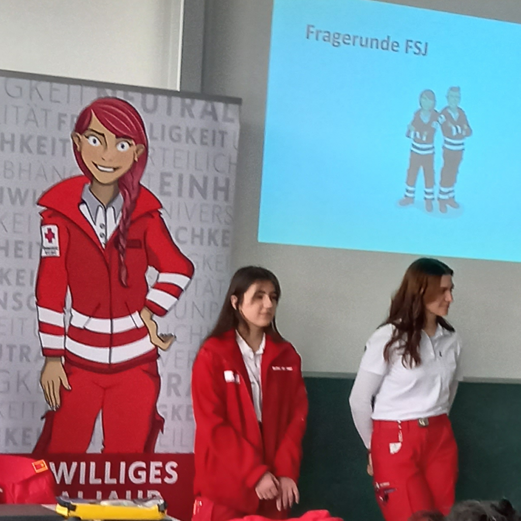 Im Rahmen eines COOL-Tages informierten Mitarbeiterinnen und Mitarbeiter des Roten Kreuzes die Schülerinnen und Schüler der Abschlussklassen über die Möglichkeit des freiwilligen sozialen Jahres und des Zivildienstes. Unter den Vortragenden befanden sich auch ehemalige Absolventinnen und Absolventen unserer Schule, was uns freut und stolz macht.